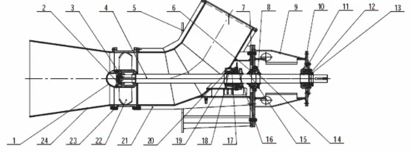 1-導流罩(zhao) 2-葉輪鎖(suo)緊蓋 3-葉(ye)輪卡環(huan) 4-軸 5-泵支(zhi)架 6-下軸(zhou)承壓蓋(gai)👽 7-下軸承(cheng)下擋套(tao) 8-下軸承(cheng)盤 9-軸承(cheng)支架 10-軸(zhou)承墊日(ri) 11-上👻軸承(cheng)💞盒 12-軸承(cheng)墊🧑🏽🎄圈 13-上(shang)軸承壓(ya)蓋 14-下軸(zhou)承上擋(dang)目 15-下軸(zhou)承壓蓋(gai)🤑 16-填料壓(ya)蓋組件(jian) 17-水封環(huan)⛹🏻♂️ 18-填料箱(xiang) 19-填料 20-軸(zhou)套 21-泵體(ti) 22-葉輪 23-短(duan)👀節 24-吸入(ru)錐管